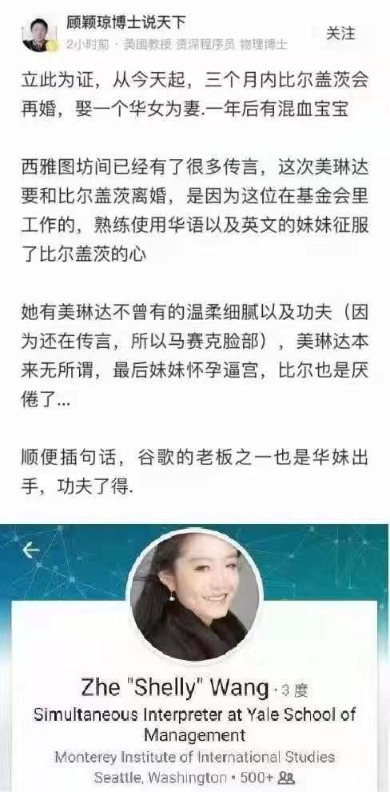 Hu xijin 胡锡进 dow is 29000, how about china stock market. Publications by authors named shelly wang. The divorce has become shrouded in drama somewhat unexpectedly, as there are rumors of a workplace romance between zhe 'shelly' wang, interpreter for the bill & melinda gates foundation, and gates himself has been known to vacation with an ex during his marriage. Zhe shelly wang, 36, took to twitter to blast the rumors and reports swirling about her relationship with the microsoft mogul in the wake of his bombshell divorce a bbc analyst translated wang's response in chinese to reports that she had more than strictly professional relationship with bill. (zhe 'shelly' wang / linkedin).